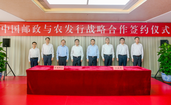 9月16日,中国邮政集团有限公司与中国农业发展银行(以下简称农发行)在中国邮政集团总部签署战略合作协议。中国邮政集团有限公司党组书记、董事长刘爱力,党组副书记、总经理郑国雨,与农发行党委书记、董事长湛东升,党委副书记、行长张小东举行工作会谈,并共同见证签约。中国邮政集团有限公司党组成员、副总经理王俭,农发行党委委员、副行长吴涛分别代表双方签署协议。双方相关部门负责同志出席。