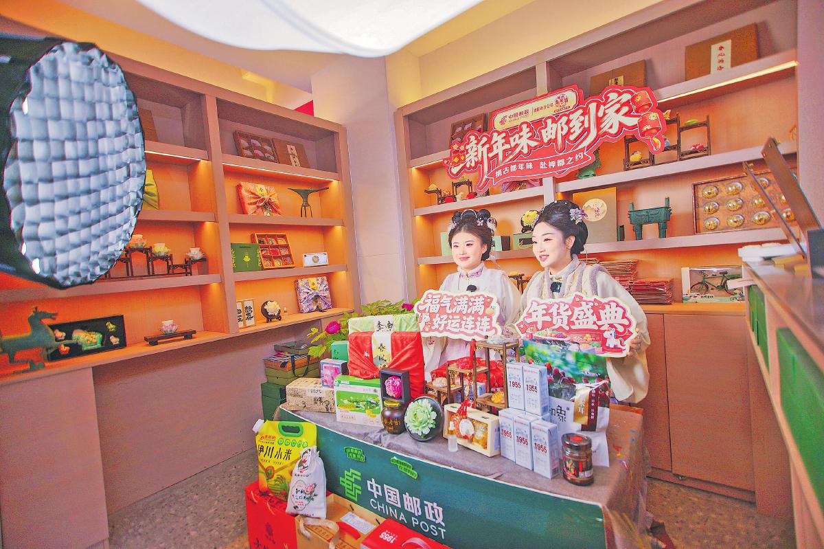 洛阳邮政直播团队在龙门主题邮局开展“新年味 邮到家”直播活动。