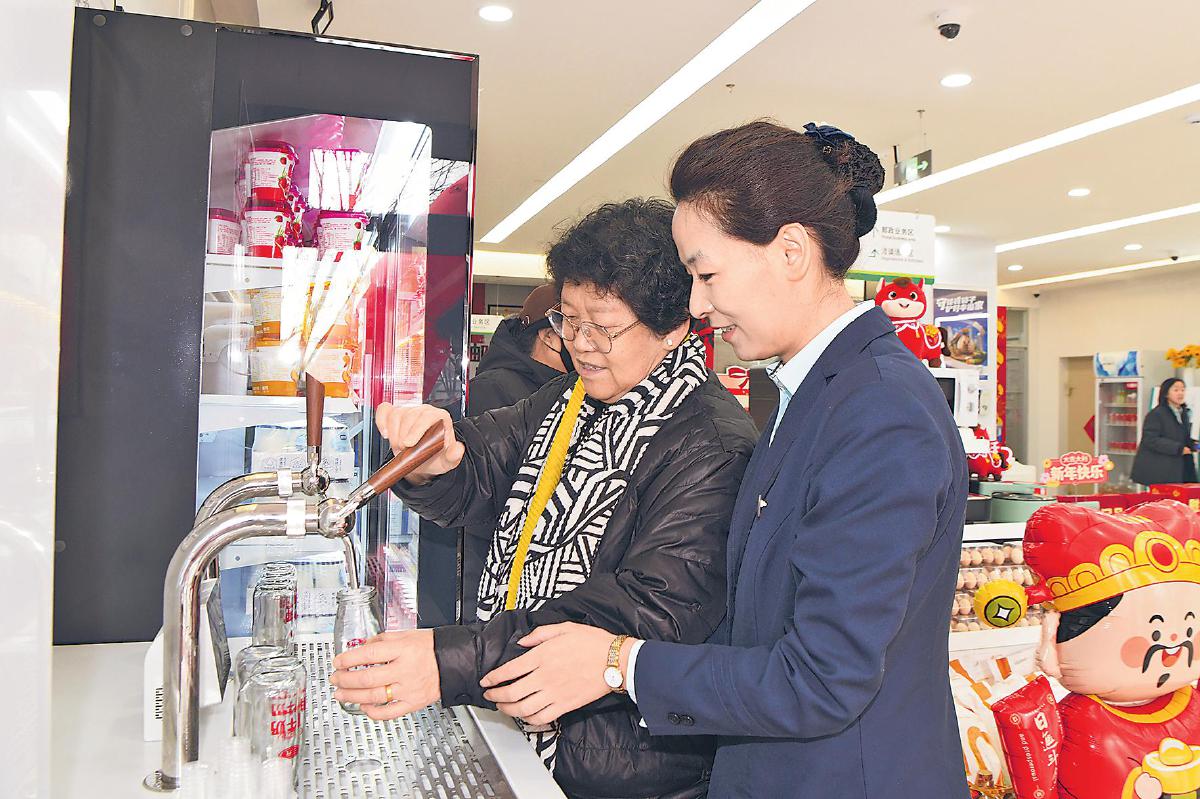 客户在工作人员指引下接牛奶。