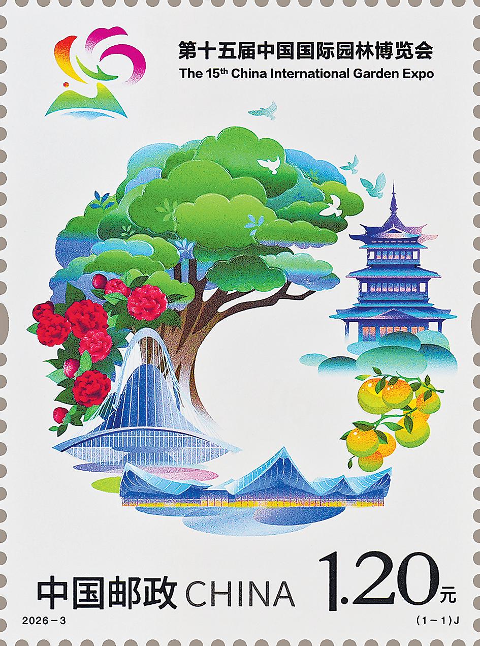 中国邮政将于4月15日发行《第十五届中国国际园林博览会》纪念邮票1套1枚。邮票图案名称为:第十五届中国国际园林博览会。