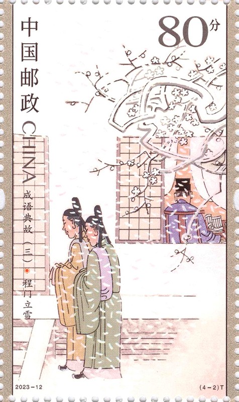 中国邮政定于2023年7月15日发行《成语典故(三)》特种邮票一套4枚,邮票图案名称为铁杵成针、程门立雪、韦编三绝、孺子可教。全套邮票面值4元。邮票计划发行数量一、三、四图各708万枚,二图720.8万枚。
