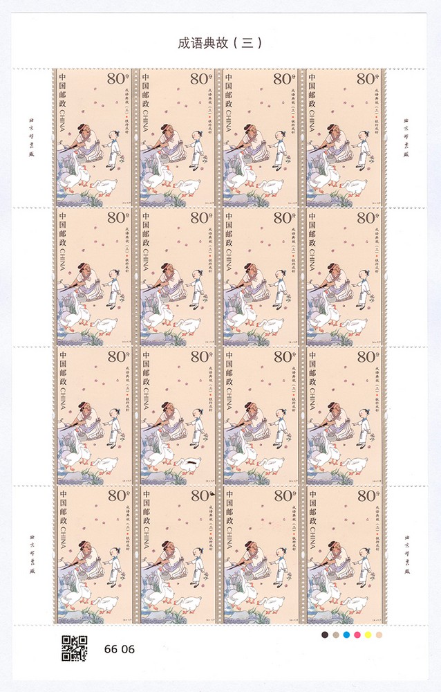 中国邮政定于2023年7月15日发行《成语典故(三)》特种邮票1套4枚。详情如下: